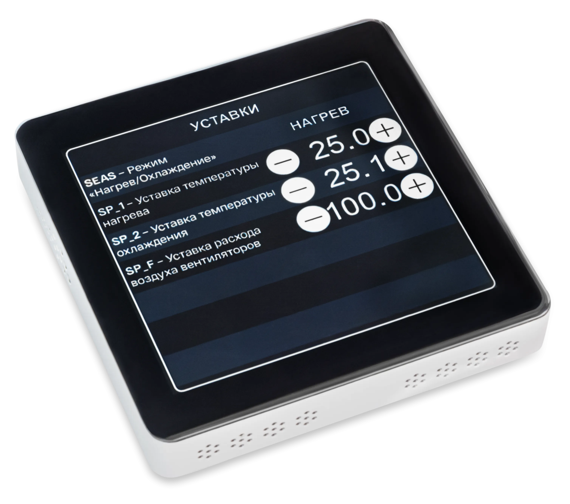 - Удобное управление: задавайте уставки, выбирайте режимы работы и контролируйте параметры системы прямо с сенсорного экрана.